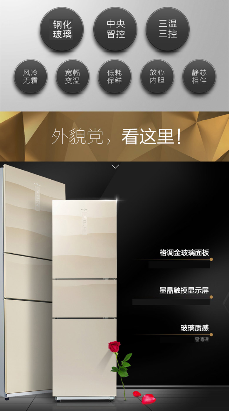 美的(Midea)BCD-239WTGM 三门冰箱 风冷无霜 格调金