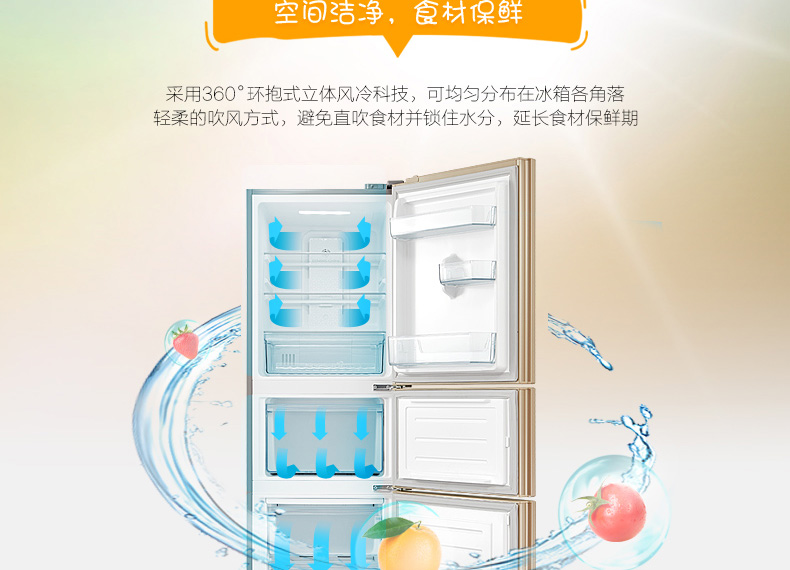 美的 (Midea)BCD-231WTM(E)风冷无霜节能静音电脑控温三门冰箱(阳光米)