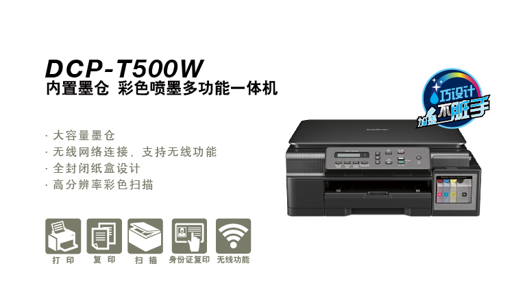 兄弟(brother)DCP-T500W 内置墨仓 彩色喷墨多功能 一体机 学生打印 作业打印(打印、复印、扫描)
