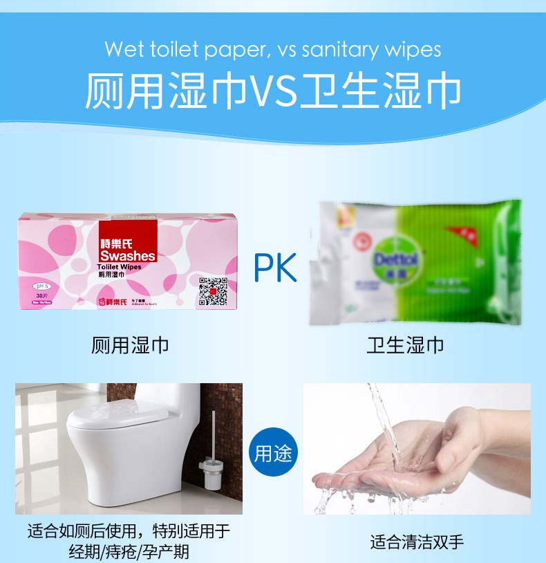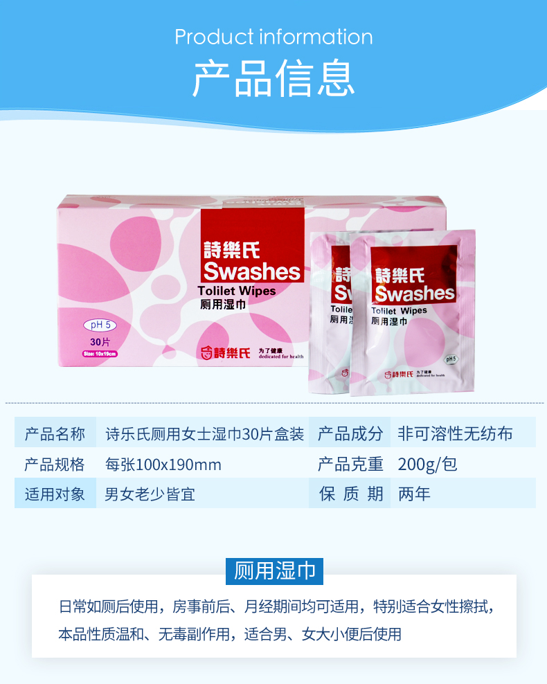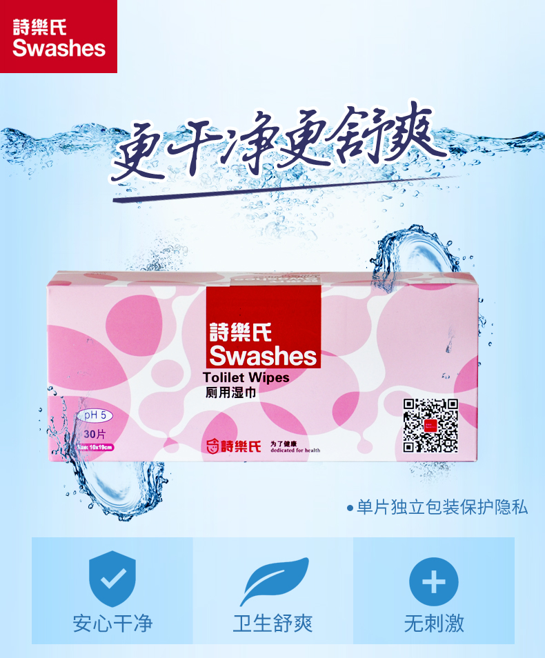 诗乐氏 厕用湿巾洁阴擦巾独立单片装6盒套装180片