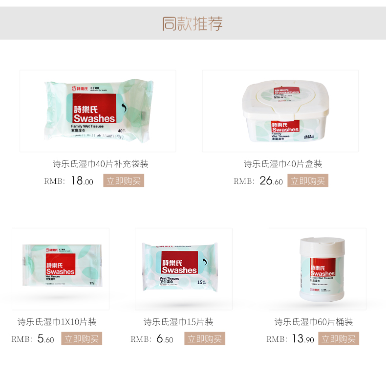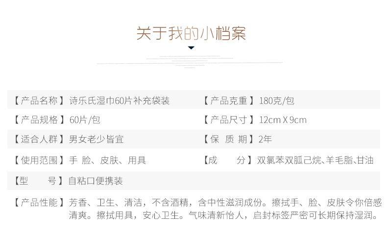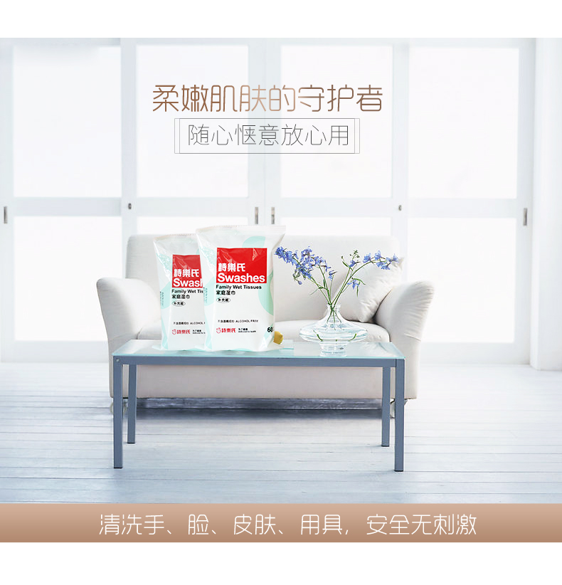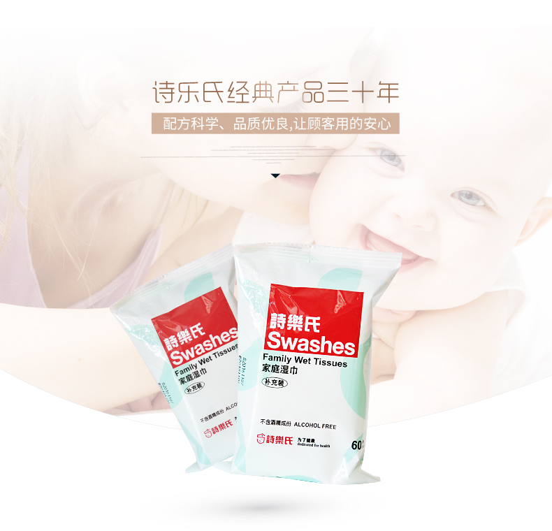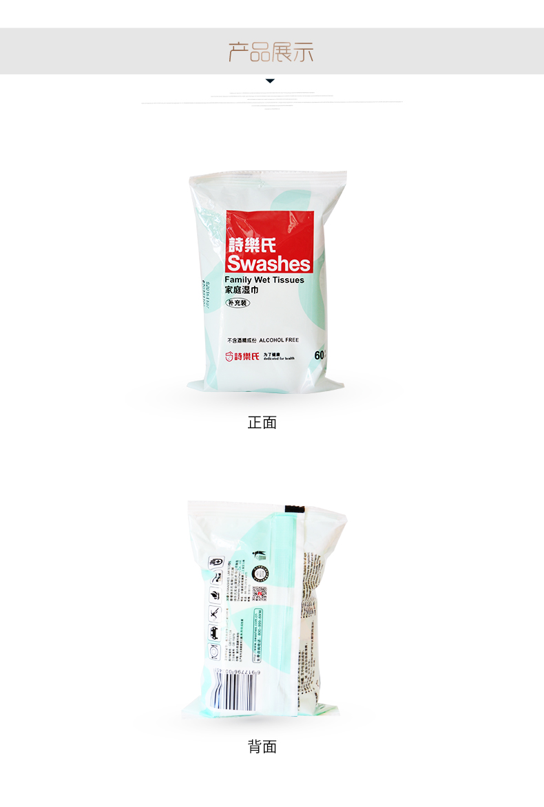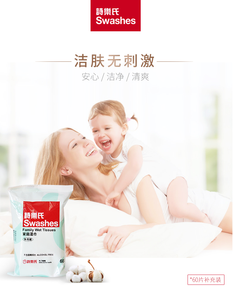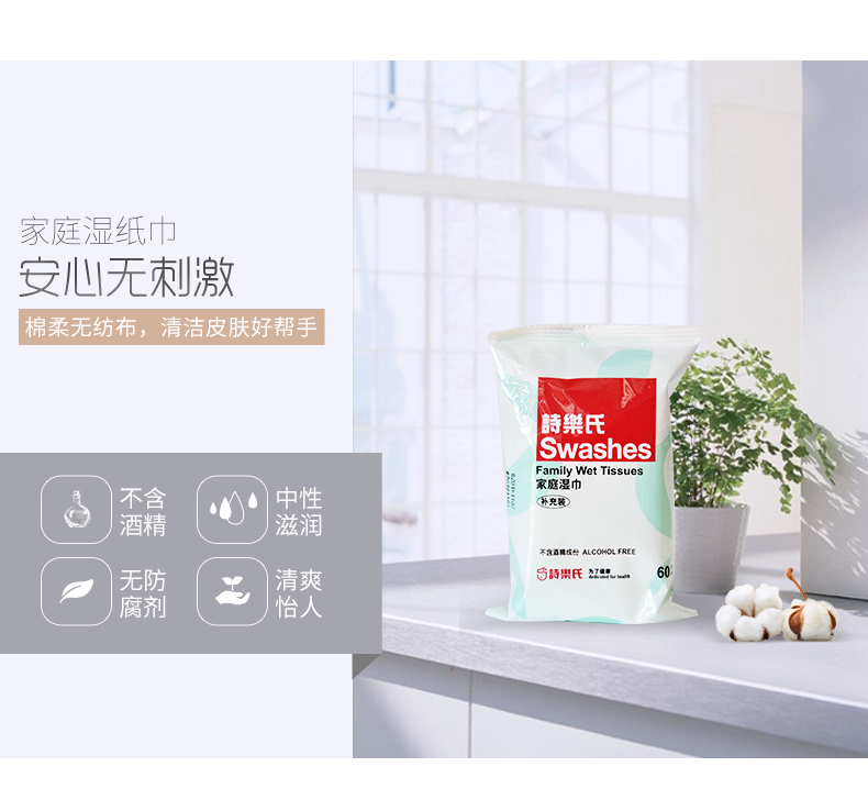 诗乐氏 不含酒精安全卫生无刺激家庭湿巾60片补充装