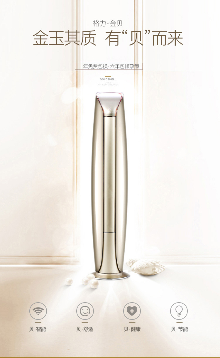 格力(GREE)金贝变频 1级能效 智能WiFi语音 柜机 家用冷暖空调 3匹 3匹