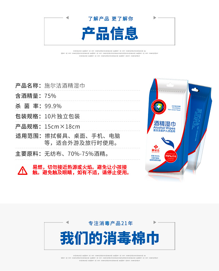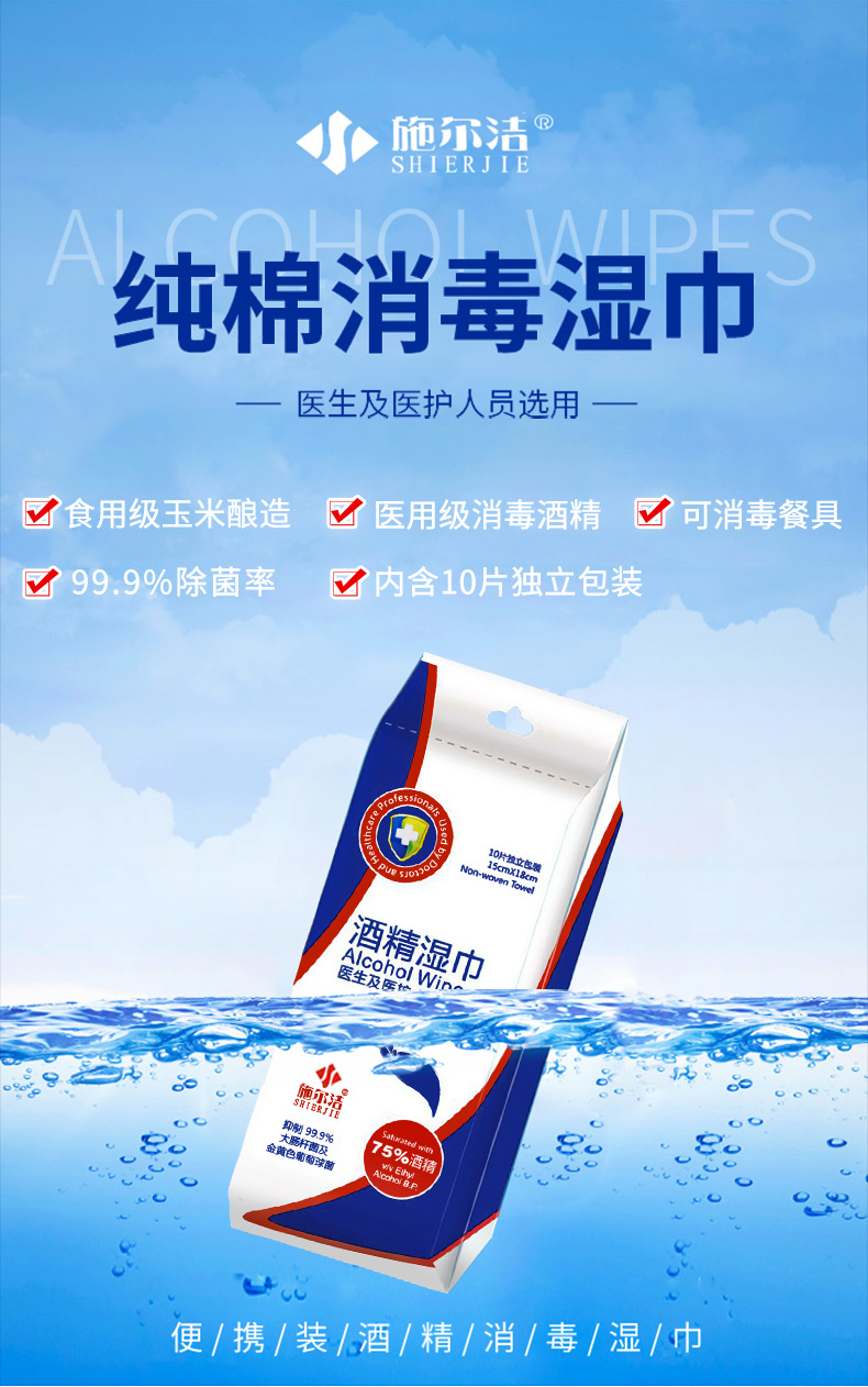 【应急防疫物资】施尔洁 75%酒精消毒湿巾 10片/包
